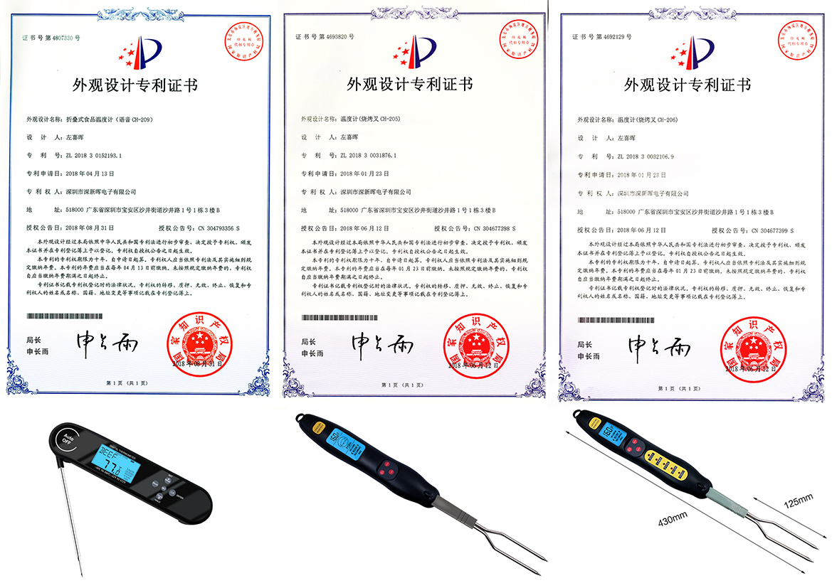 深圳市深新暉電子有限公司一直秉持“創新、高效、和諧、誠信”的企業精神,始終把創新放在首位,近年來取得了飛速的發展。CH-209也成功獲得了美國外觀專利的授權。折疊食物溫度計 (...