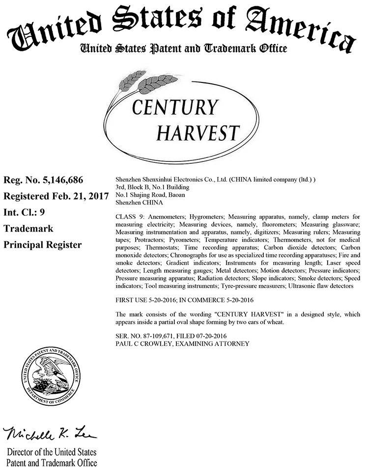 為更好地進行知識產權管理和應用,切實進行知識產權保護工作,公司將品牌“CENTURY HARVEST世紀怡豐”進行了美國商標注冊,并已通過核準,這也標志著公司知識產權管理工作又向前跨進了一步。